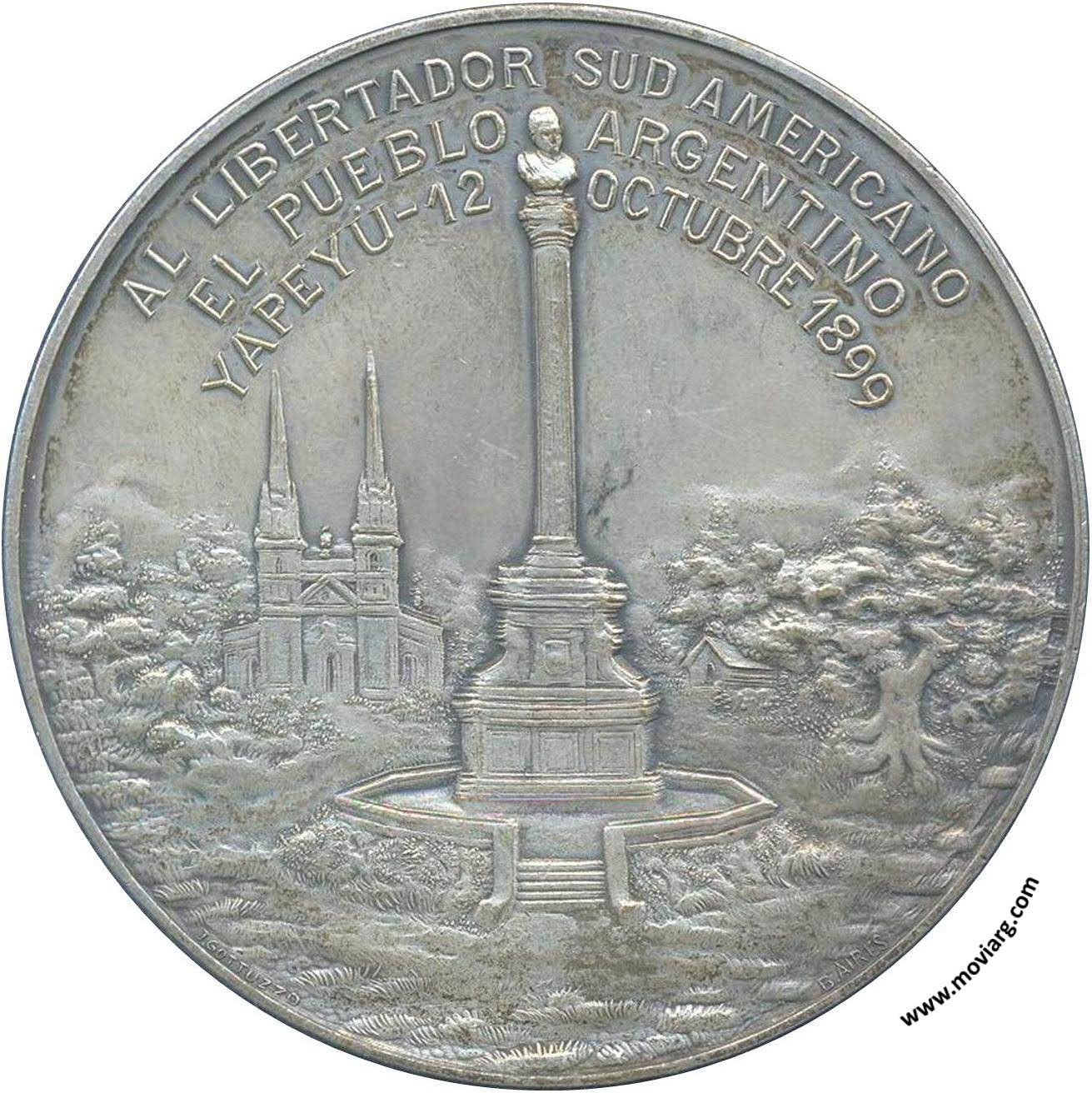 Anverso: GENERAL DON JOSÉ DE SAN MARTIN / 25 DE FEBRERO 1778 = 17 DE AGOSTO 1850 Reverso: AL LIBERTADOR SUD AMERICANO / EL PUEBLO ARGENTINO / YAPEYU - 12 OCTUBRE 1899. Firma: J. GOTTUZZO / B. AIRES Referencia: | |