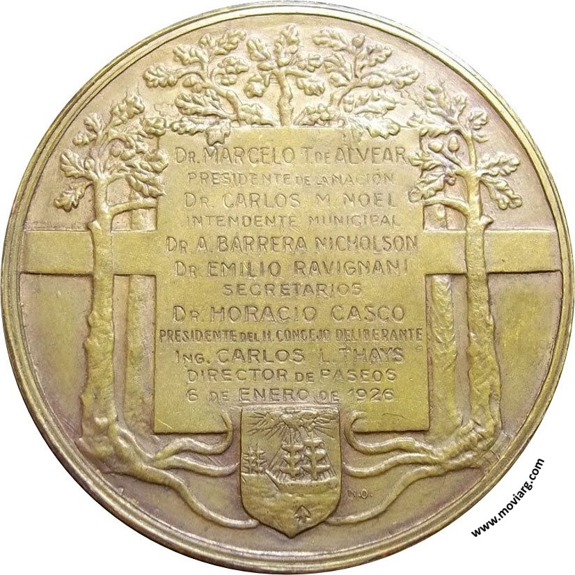 Anverso: MUNICIPALIDAD DE BUENOS AIRES / PLAZA ARISTOBULO DEL VALLE. Firma: OLIVA NAVARRO Reverso: DR. MARCELO T. DE ALVEAR / PRESIDENTE DE LA NACIÓN / DR. CARLOS M. NOEL / INTENDENTE MUNICIPAL / DR. A. BARRERA NICHOLSON / DR. EMILIO RAVIGNANI / SECRETARIOS / DR. HORACIO CASCO / PRESIDENTE DEL H. CONGRESO DELIBERANTE / ING. CARLOS L. THAYS / DIRECTOR DE PASEOS / 6 DE ENERO DE 1926. Firma: N.O. Referencia: | |