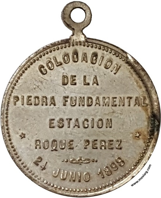 Anverso: CAPILLA DE SAN JUAN BAUTISTA. Firma: ORZALI B. Y C. Reverso: COLOCACION / DE LA / PIEDRA FUNDAMENTAL / ESTACION / ROQUE PEREZ / 24 JUNIO 1898 Referencia: | |