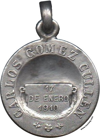Anverso: SAN JUAN. Firma: C. Y AF. ROSSI Reverso: CARLOS GOMEZ CULLEN / 17 / DE ENERO / 1910 Canto: Liso. PLATA Referencia: | |