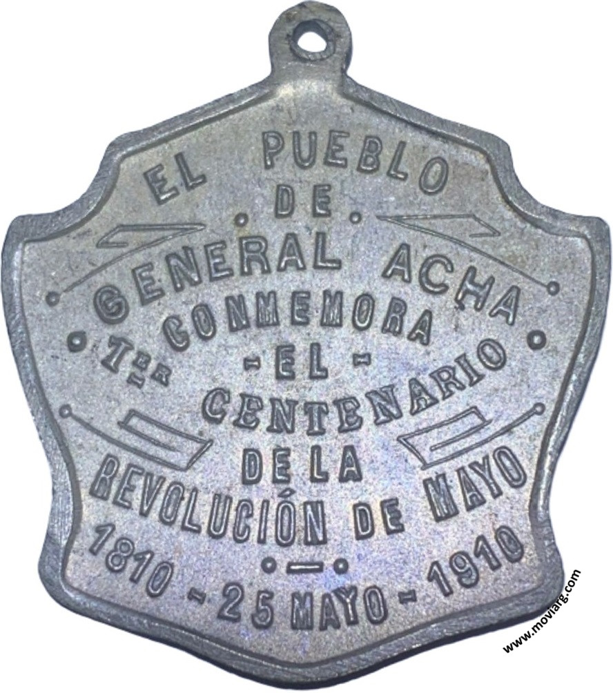 Colección Magnin Anverso: 1810. Firma: C. Y AF. ROSSIReverso: EL PUEBLO / DE / GENERAL ACHA / CONMEMORA / EL / 1ER. CENTENARIO / DE LA / REVOLUCIÓN DE MAYO / 1810 - 25 MAYO - 1910 Referencia: | |