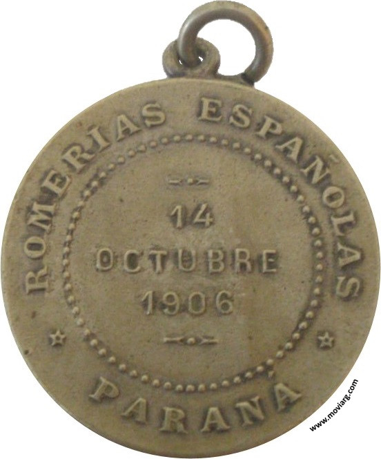 Colección Matías Losinno Anverso: ALFONSO / XIII / VICTORIA. Campo: 31 MAYO 1906Reverso: ROMERIAS ESPAÑOLAS / PARANÁ / 14 / OCTUBRE / 1906 Referencia: | |