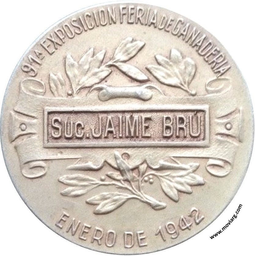 Anverso: SOCIEDAD RURAL = OLAVARRIA. Firma: GOTTUZZO Y PIANA Reverso: 91A. EXPOSICION FERIA DE GANADERIA / [ SUC. JAIME BRÚ ] / ENERO DE 1942 Referencia: | |