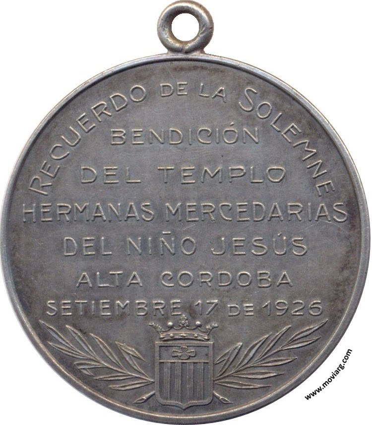 Anverso: Reverso: RECUERDO DE LA SOLEMNE / BENDICIÓN / DEL TEMPLO / HERMANAS MERCEDARIAS / DEL NIÑO JESÚS / ALTA CORDOBA / SETIEMBRE 17 DE 1926 Referencia: | |