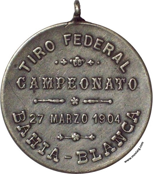 Anverso: Firma: BELLAGAMBA Y ROSSI Reverso: TIRO FEDERAL / CAMPEONATO / 27 MARZO 1904 / BAHIA - BLANCA Referencia: | |