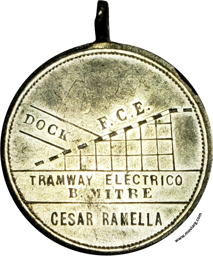Anverso: INAUGURACION DEL BARRIO HUMBERTO 1° / 19 MAYO DE 1901. Firma: BELLAGAMBA Y ROSSI Reverso: DOCK / F.C.E. / TRAMWAY ELÉCTRICO / B. MITRE / CESAR RAMELLA Referencia: | |