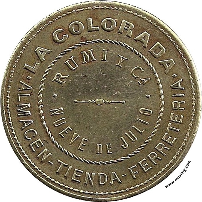 RAH Anverso: 10 / PESOSReverso: LA COLORADA / ALMACEN - TIENDA - FERRETERIA / RUMI Y CA. / NUEVE DE JULIO Referencia: | |