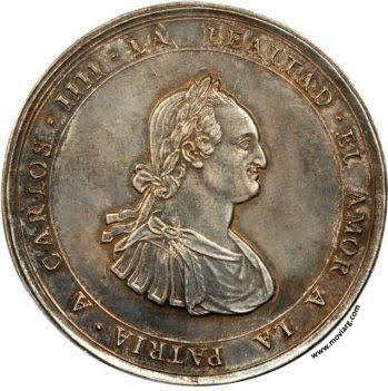 Anverso: A CARLOS IIII LA LEALTAD EL AMOR A LA PATRIA Reverso: QUISO SER VENCEDOR YA ESTA VENCIDO / DIA XII DE AGOSTO DE MDCCCVI. Firma: Arrabal Referencia: BURZIO-5358 ROSA-/3 | |