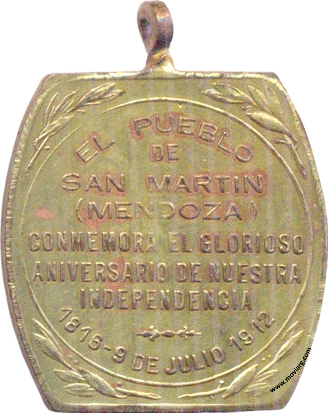 Anverso: Firma: C. Y AF. ROSSI Reverso: EL PUEBLO / DE / SAN MARTIN / ( MENDOZA ) / CONMEMORA EL GLORIOSO / ANIVERSARIO DE NUESTRA / INDEPENDENCIA / 1816 - 9 DE JULIO 1912 Referencia: | |