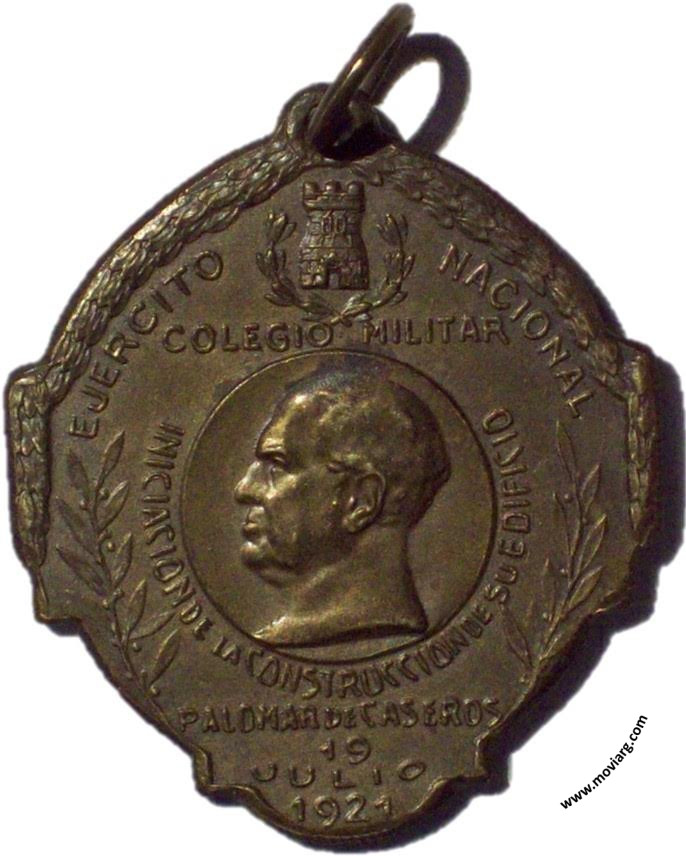 Anverso: EJERCITO / NACIONAL / COLEGIO MILITAR / INICIACION DE LA CONSTRUCCION DE SU EDIFICIO / PALOMAR DE CASEROS / 19 / JULIO / 1921 Reverso: REPÚBLICA / ARGENTINA / PRESIDENTE DE LA NACIÓN / DR. HIPÓLITO YRIGOYEN / MINISTRO DE GUERRA / DR. JULIO MORENO Referencia: | |