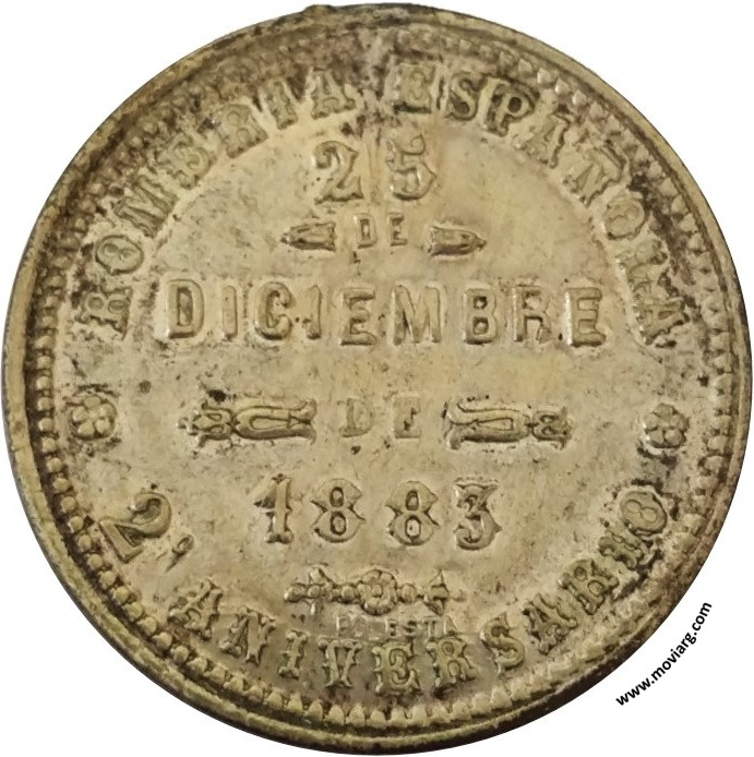 Anverso: ASOCIACION ESPAÑOLA DE SOCORROS MÚTUOS / AZUL Reverso: ROMERIA ESPAÑOLA / 25 / DE / DICIEMBRE / DE / 1883 / 2° ANIVERSARIO. Firma: PODESTA Referencia: | |