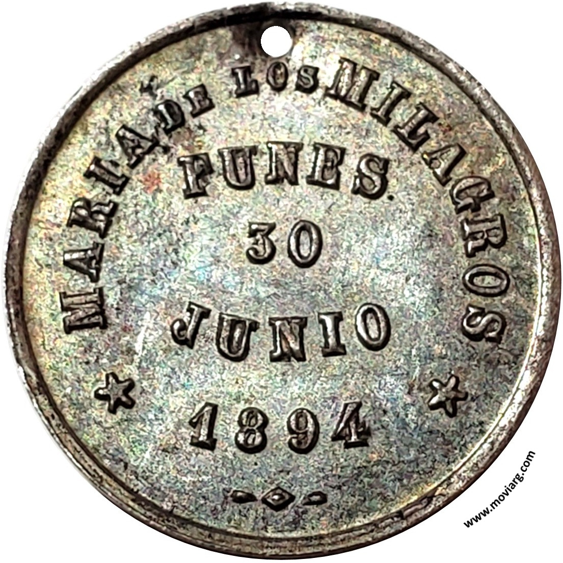 | Año: 1894 Bautismos, Casamientos y Aniversarios Metal: Plata - Peso: 2.04gr - Módulo: 18.69mm - Espesor: 0.97mm - Rotación: 12hrs Grabador: (Rosario Grande) | |