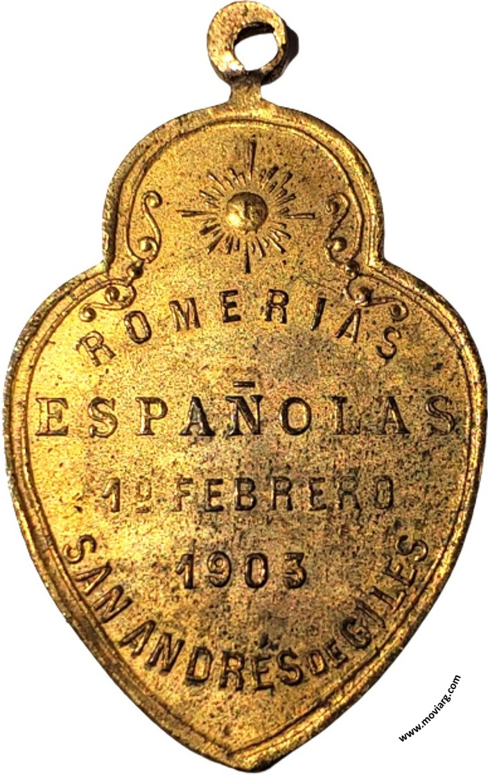 Anverso: CONFRATERNIDAD Reverso: ROMERIAS / ESPAÑOLAS / 1° FEBRERO / 1903 / SAN ANDRES DE GILES Referencia: | |