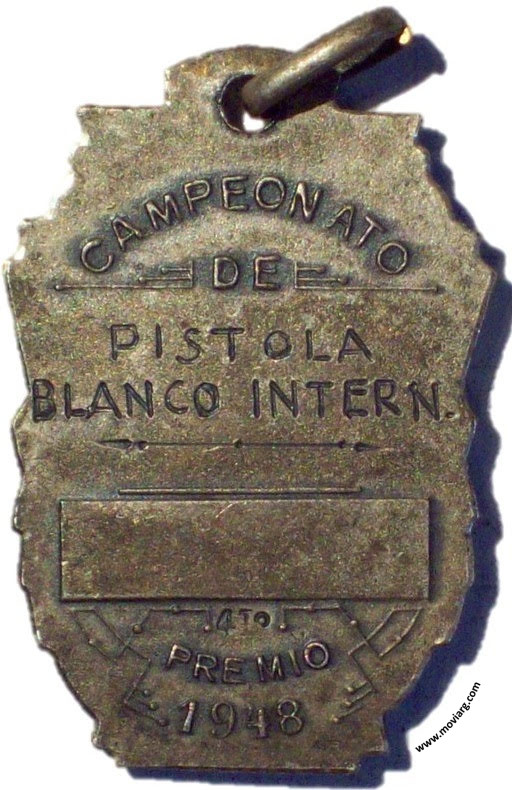 Anverso: Campo: A / B / A / D (ASOCIACIÓN BANCARIA ARGENTINA DE DEPORTES) Reverso: CAMPEONATO / DE / [ PISTOLA ] / [ BLANCO INTERN. ] / [ 4TO. ] / PREMIO / 1948 Referencia: | |