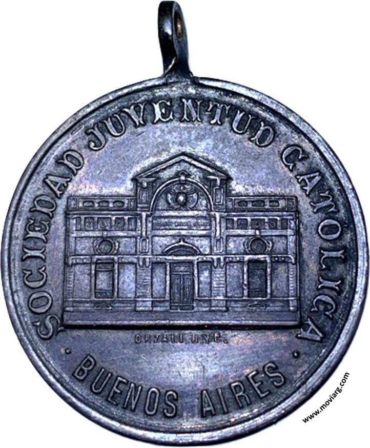 Colección Magnin Anverso: SOCIEDAD JUVENTUD CATOLICA / BUENOS AIRES. Firma: ORZALI B. Y C.Reverso: BENDICION / DEL / EDIFICIO SOCIAL / POR EL / EXMO SEÑOR ARZOBISPO / DR. U CASTELLANO / PADRINOS / LUISA E. DE ORTIZ / AGUSTIN GARCIA / 18 JULIO 1897 Referencia: | |