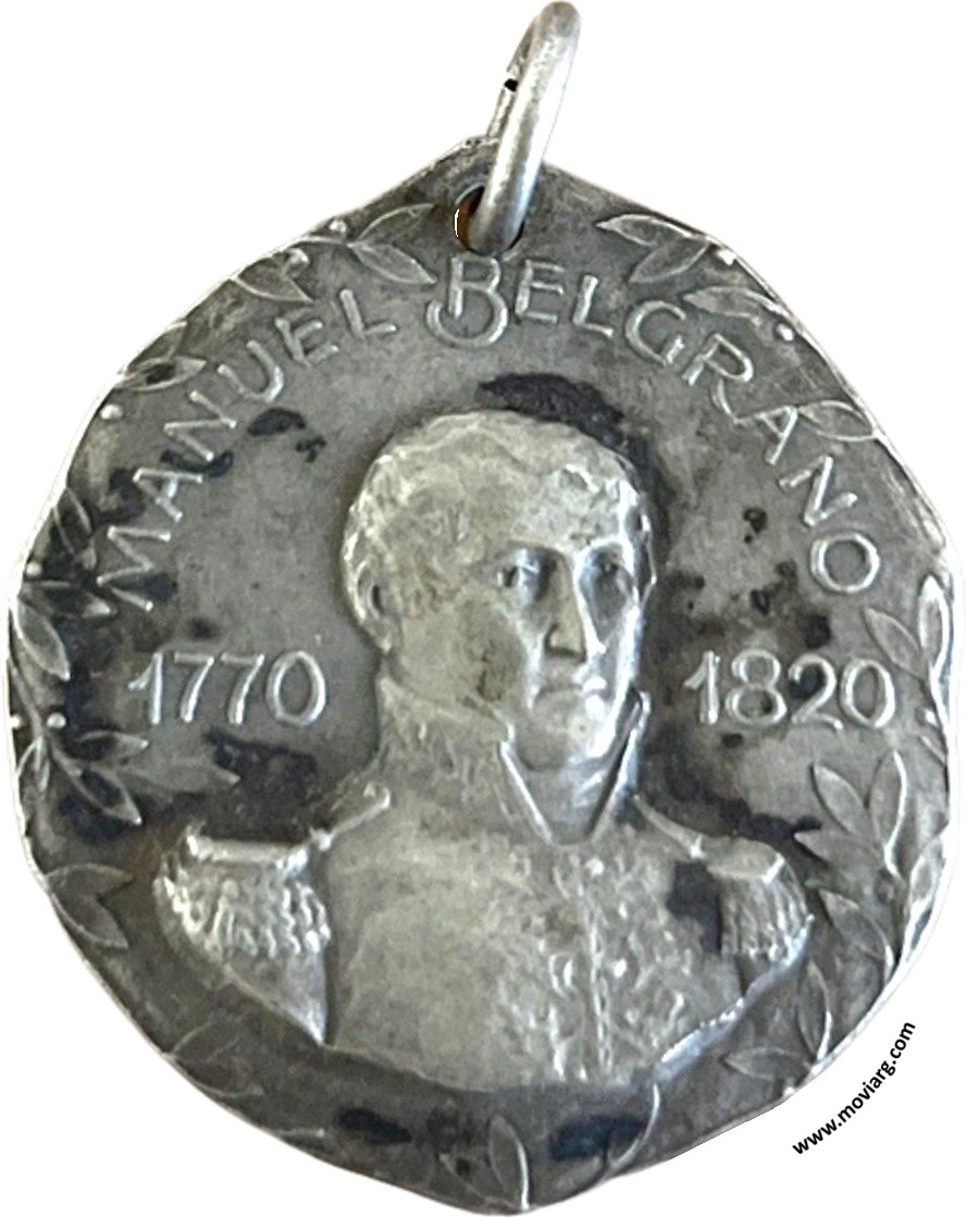Anverso: MANUEL BELGRANO / 1770 / 1820 Reverso: ASOCIACION PATRIOTICA / ESTUDIANTIL / GENERAL SAN MARTIN / 1ER. CENTENARIO DE LA / CREACION DE LA BANDERA / NACIONAL / 1812 - 27. FEBRERO . 1912 Referencia: | |