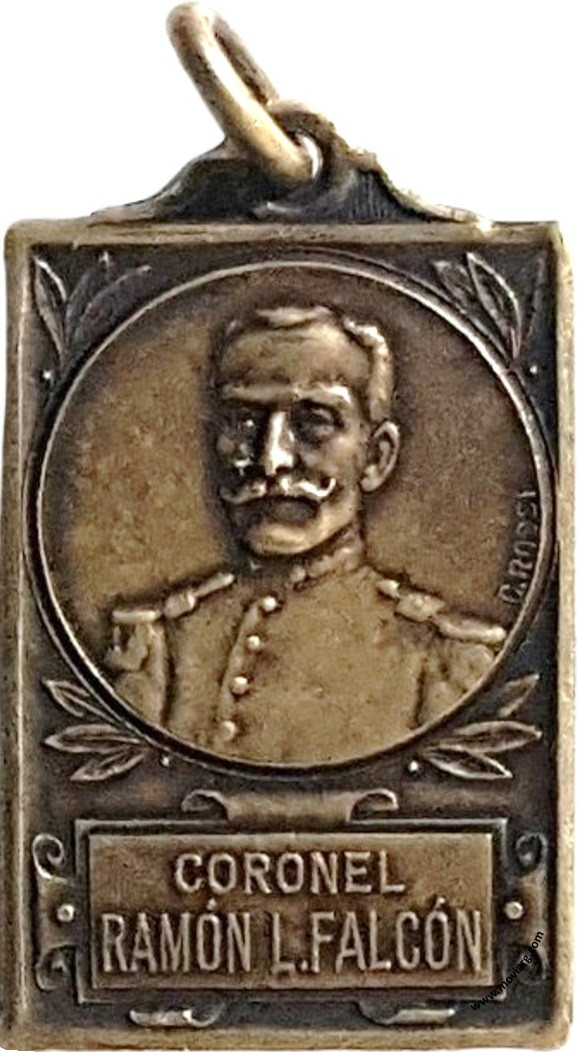 Anverso: CORONEL / RAMÓN L. FALCÓN. Firma: C. ROSSI Reverso: INAUGURACIÓN / DE SU / MONUMENTO / EN LA ESCUELA / DE POLICIA / DE LA CAPITAL / XII - MCMXXIV Referencia: | |