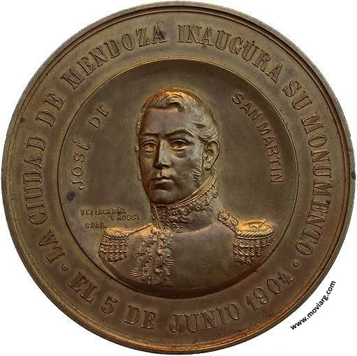 Anverso: LA CIUDAD DE MENDOZA INAUGURA SU MONUMENTO / EL 5 DE JUNIO 1904 / JOSÉ DE / SAN MARTIN. Firma: BELLAGAMBA / Y ROSSI / GRAB. Reverso: EL MINISTERIO DE GUERRA / REPÚBLICA ARGENTINA. Campo: ACUÑADA EN EL ARSENAL / PRINCIPAL DE GUERRA Referencia: | |