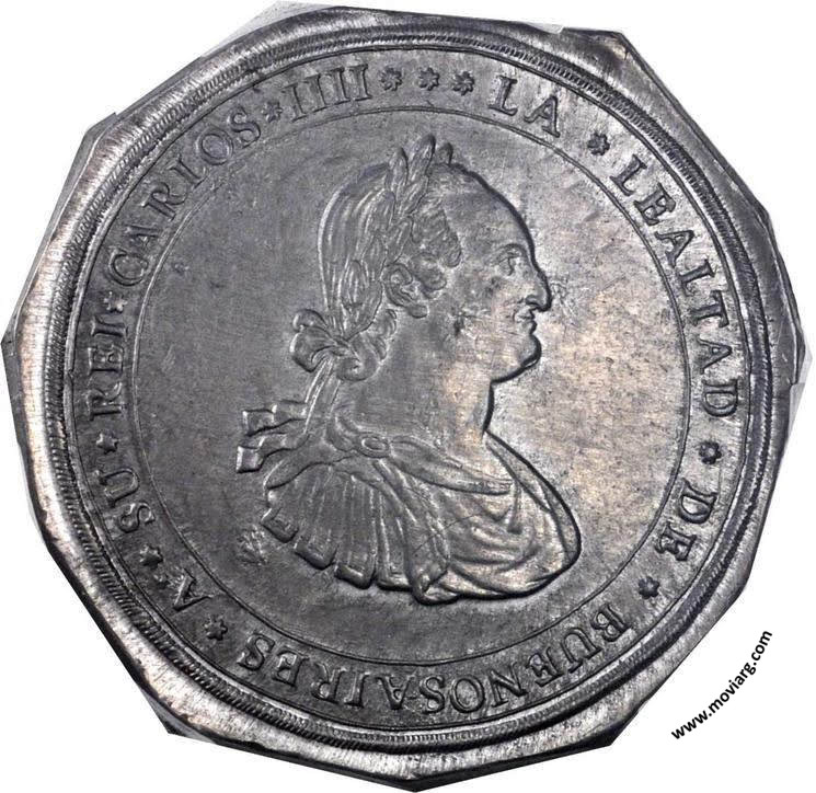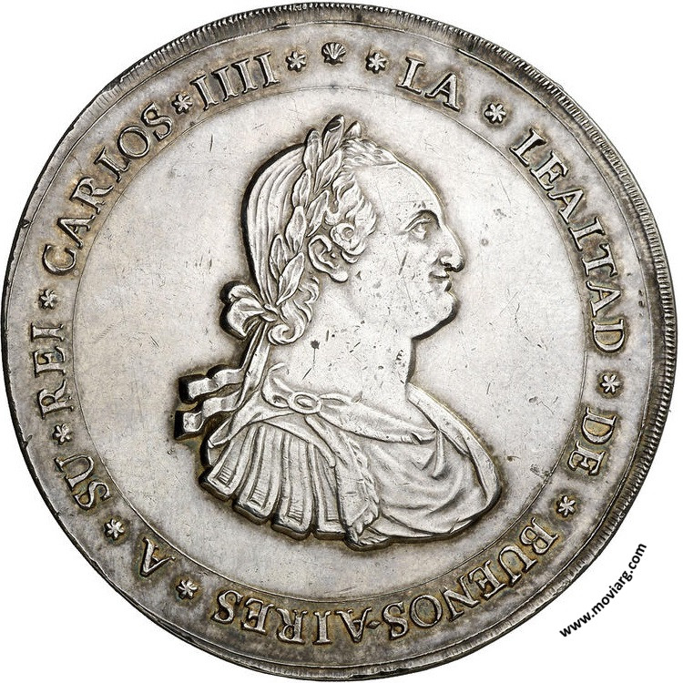 Anverso: A SU REI CARLOS IIII LA LEALTAD DE BUENOS AIRES Reverso: Referencia: | |