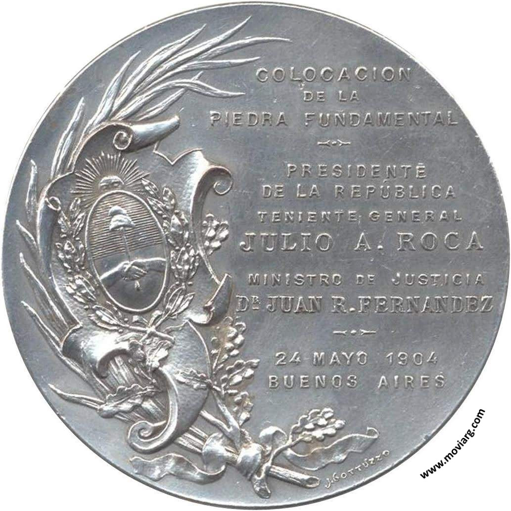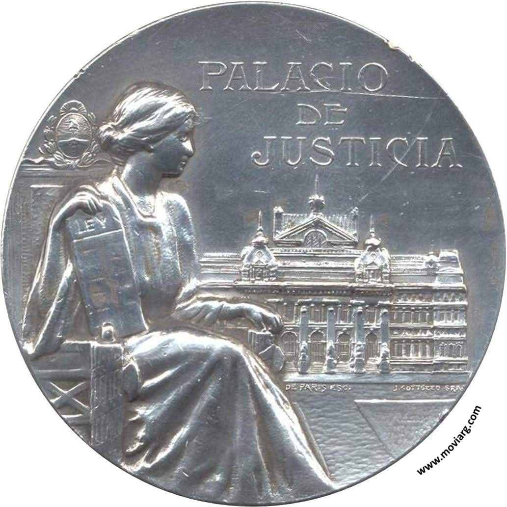 Anverso: PALACIO / DE / JUSTICIA. Campo: LEY. Firma: DE PARIS ESC. / J. GOTTUZZO GRA. Reverso: COLOCACION / DE LA / PIEDRA FUNDAMENTAL / PRESIDENTE / DE LA REPÚBLICA / TENIENTE GENERAL / JULIO A. ROCA / MINISTRO DE JUSTICIA / DR. JUAN R. FERNANDEZ / 24 MAYO 1904 / BUENOS AIRES. Firma: J. GOTTUZZO Referencia: BURZIO-417 | |
