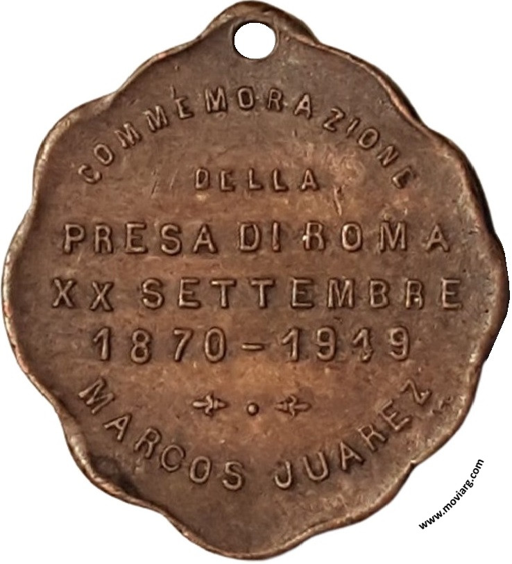 Anverso: Firma: A. BIDOGLIA Reverso: COMMEMORAZIONE / DELLA / PRESA DI ROMA / XX SETTEMBRE / 1870 - 1919 / MARCOS JUAREZ Referencia: | |