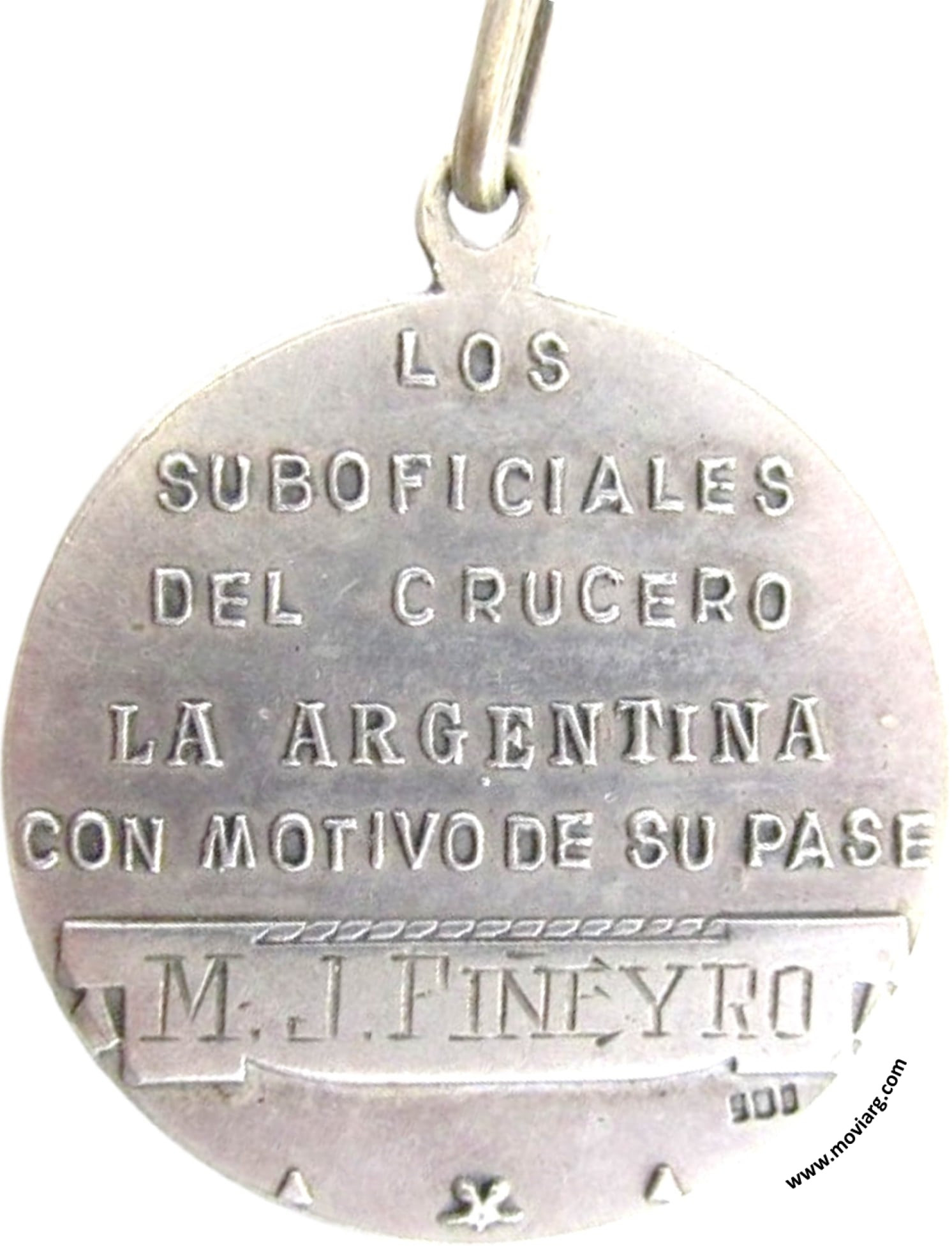Anverso: Firma: O. GALLO / ARGENTINA Reverso: LOS / SUBOFICIALES / DEL CRUCERO / LA ARGENTINA / CON MOTIVO DE SU PASE / [ M. J. PIÑEYRO ]. Exergo: [ 900 ] Referencia: | |