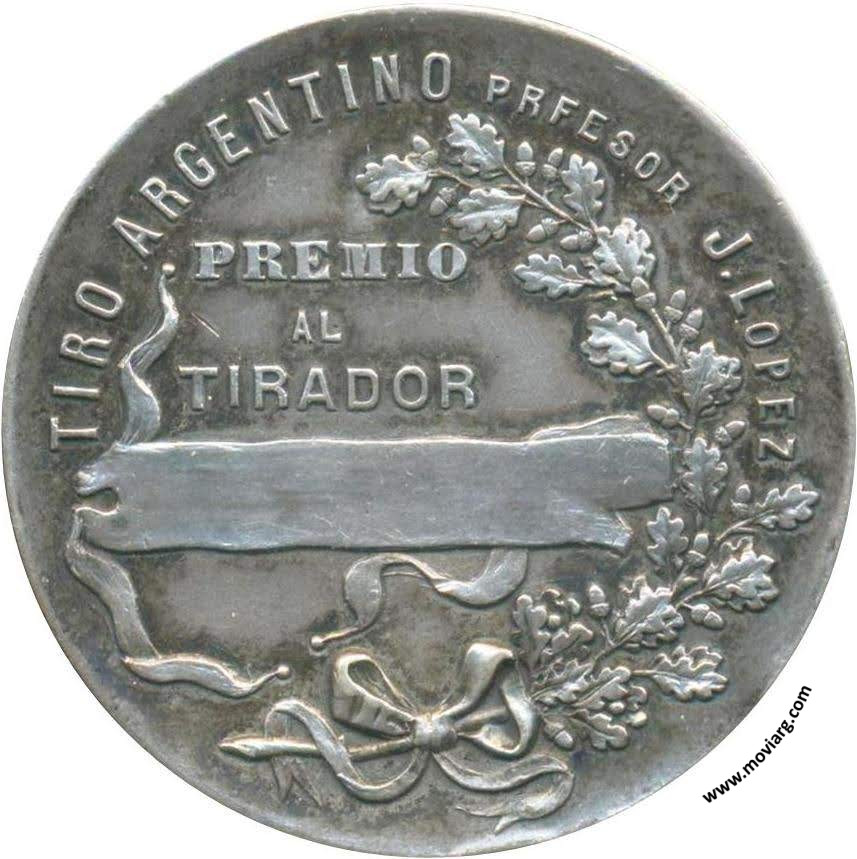 Anverso: CONCURSO DE TIRADORES. Firma: ORZALI B. Y C. Reverso: TIRO ARGENTINO PRFESOR (sic) J. LOPEZ / PREMIO / AL / TIRADOR Canto: Liso. PLATA Referencia: | |