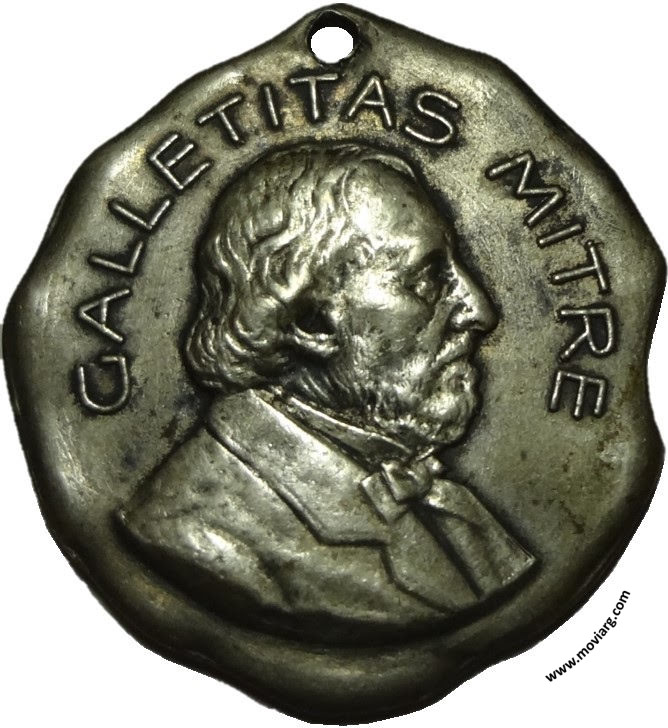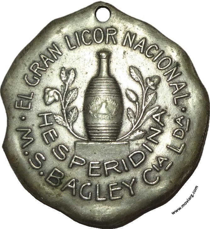 Anverso: GALLETITAS MITRE Reverso: EL GRAN LICOR NACIONAL / HESPERIDINA / M.S. BAGLEY CIA. LDA. Canto: Nota Moviarg: Se presenta esta pieza como del año 1909 por existir la publicación del año 1909, "Memoria presentada al Congreso Nacional de 1910 por el Ministro de Justicia e Instrucción Pública" Tomo III año 1909, pp273. Donde se mencionan que estas piezas han sido entregadas dando una descripción de las mismas similar a las aquí publicadas. Referencia: | |