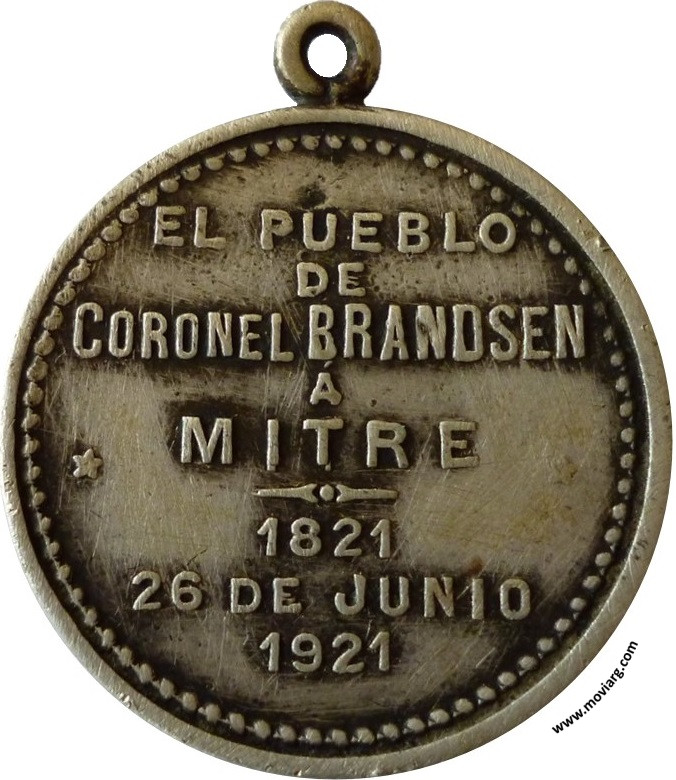Anverso: Firma: GOTTUZZO / Y PIANA Reverso: EL PUEBLO / DE / CORONEL BRANDSEN / Á / MITRE / 1821 / 26 DE JUNIO / 1921 Referencia: | |