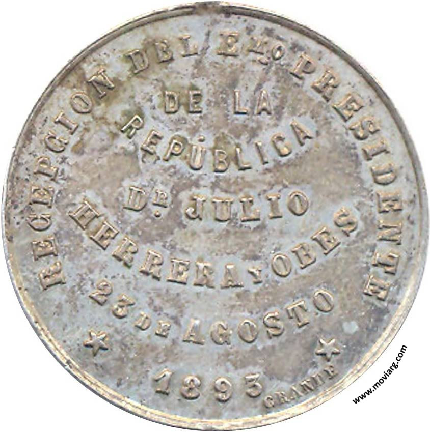 Anverso: MONUMENTO DE LA INDEPENDENCIA / FLORIDA Reverso: RECEPCION DEL EMO. PRESIDENTE / DE LA / REPÚBLICA / DR. JULIO / HERRERA Y OBES / 25 DE AGOSTO / 1893. Firma: GRANDE Referencia: FERRARI-228 (RG) | |