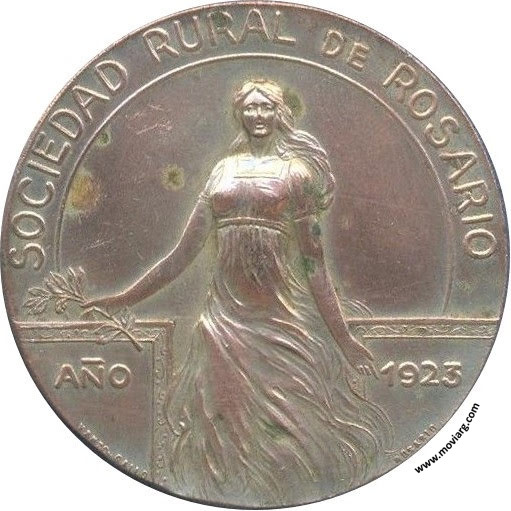 Anverso: SOCIEDAD RURAL DE ROSARIO / AÑO / 1923. Firma: VANZO Y GALLO / ROSARIO Reverso: EXPOSICION NACIONAL / DE GANADERIA Referencia: | |