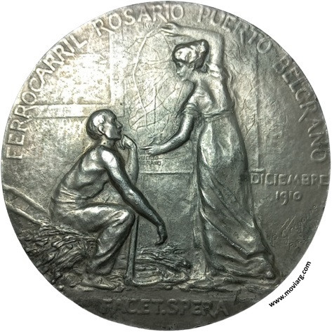 Anverso: FERROCARRIL ROSARIO PUERTO BELGRANO / FACE SPERA / DICIEMBRE / 1910. Campo: PUERTO / BELGRANO Firma: R. GREGOIRE / PARIS 1910 Reverso: PRÉSIDENT / A. BENARD / ADMINISTRATEUR / DELEGUE / P. CHAPUY / DIRECTEUR / E. OTTEN. Campo: R.P.B. Firma: L OUTHWAITE Canto: Liso. [ ARGENT ] / [ 950/1000 ] Referencia: | |