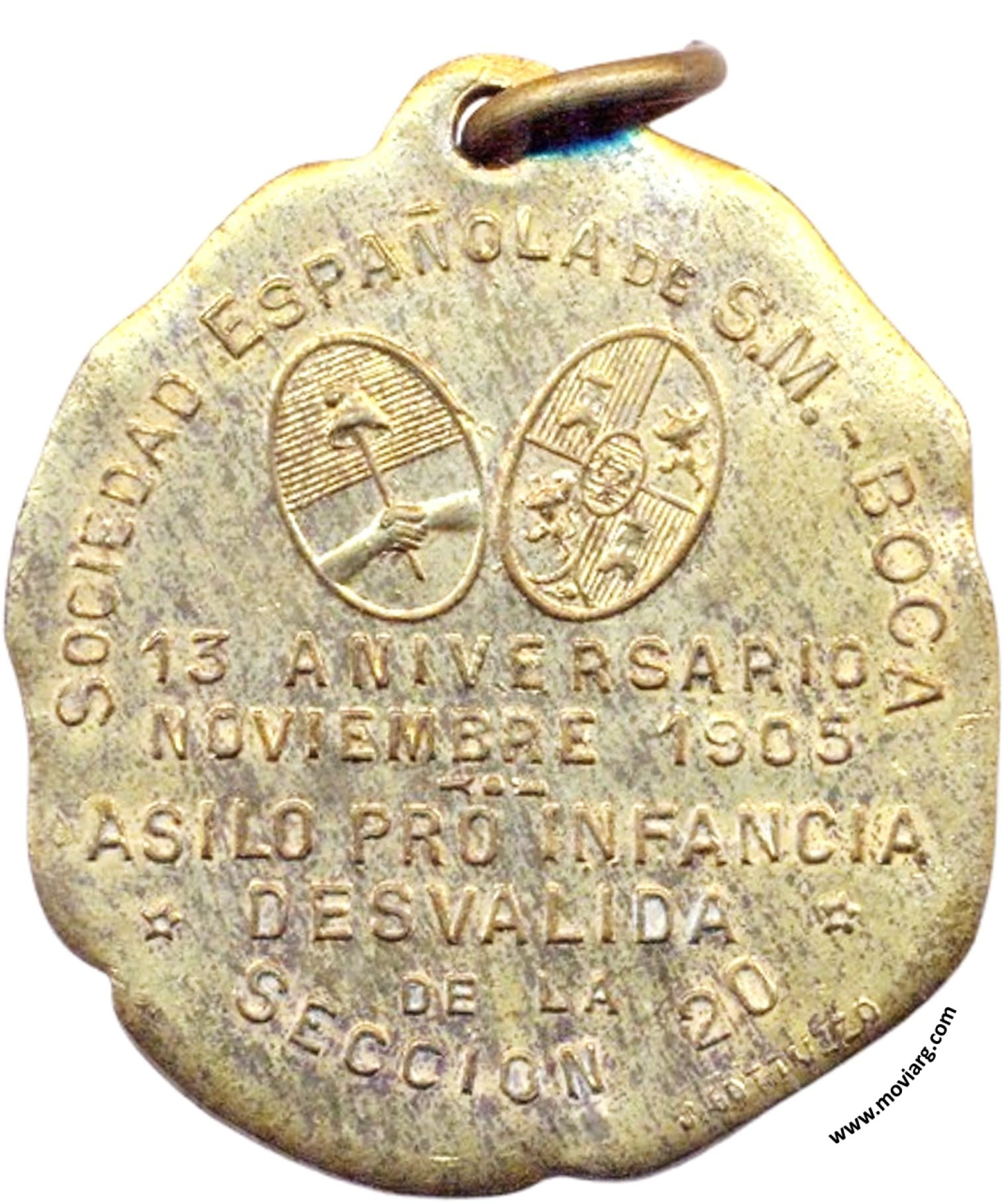 Anverso: ERGO PARVULOS URGET NOS / CHARITAS Reverso: SOCIEDAD ESPAÑOLA DE S.M. - BOCA / 13 ANIVERSARIO / NOVIEMBRE 1905 / ASILO PRO INFANCIA / DESVALIDA / DE LA / SECCION 20 Referencia: | |