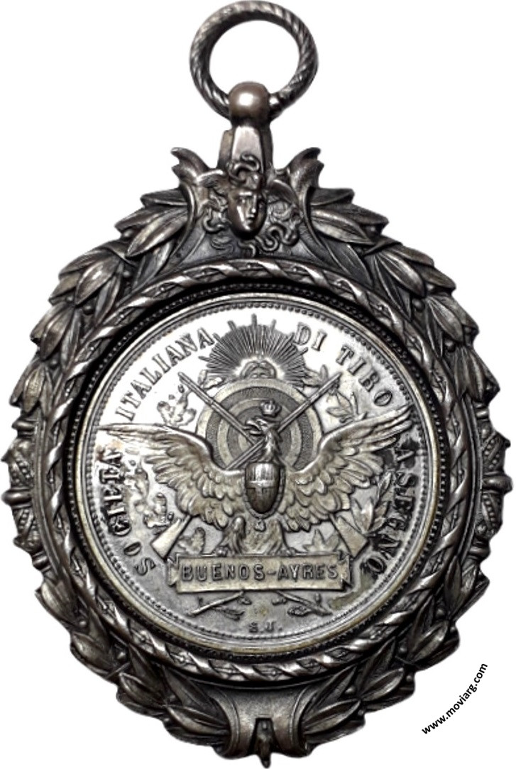 Anverso: Firma: JOHNSON Reverso: SOCIETA ITALIANA / DI TIRO / A SEGNO / BUENOS-AYRES. Firma: S.J. Referencia: | |