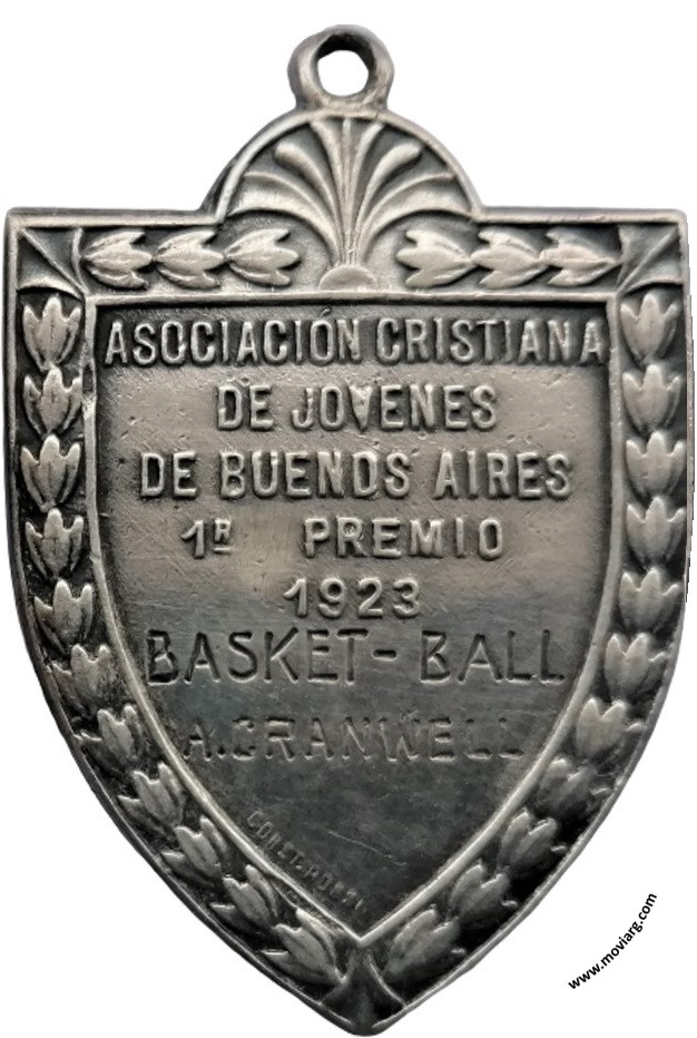 Anverso: ALMA / MENTE / CUERPO Reverso: ASOCIACIÓN CRISTIANA / DE JOVENES / DE BUENOS AIRES / 1R. PREMIO / 1923 / [ BASKET-BALL ] / [ A. CRANWELL ]. Firma: CONST. ROSSI Referencia: | |