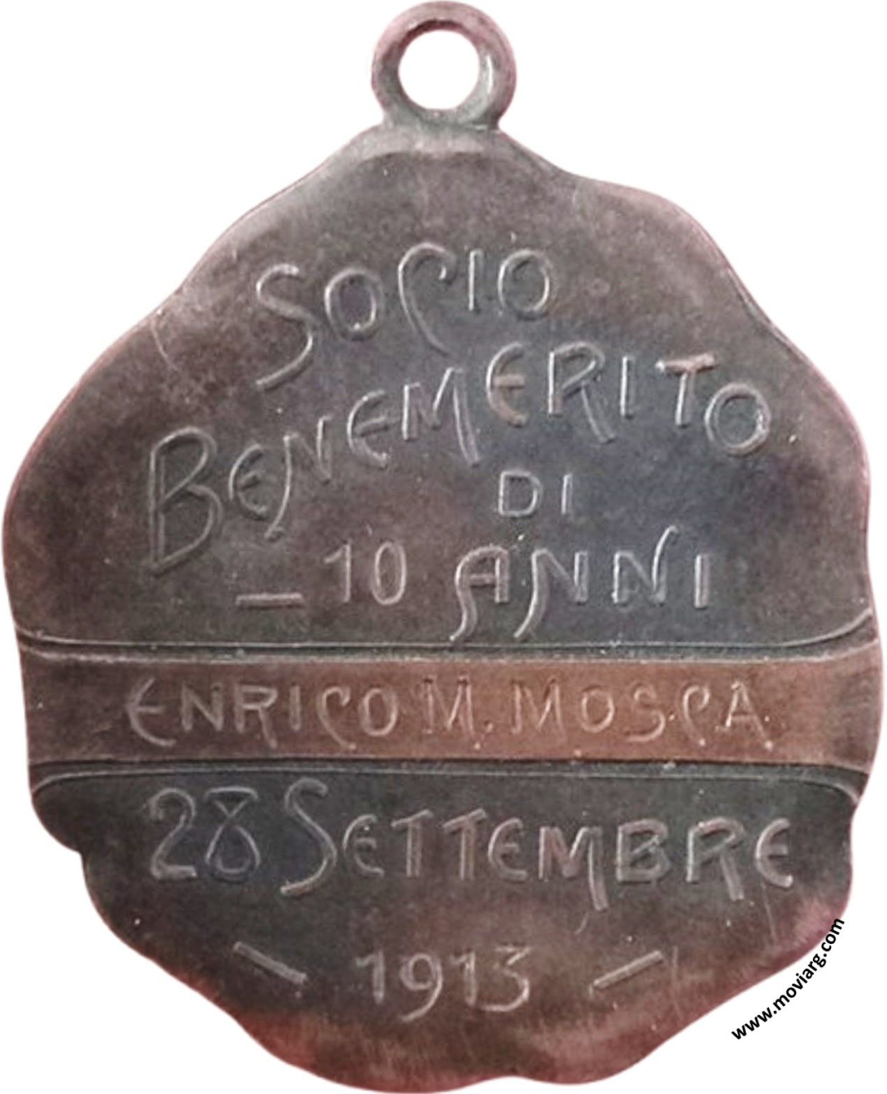 Anverso: SOCIETÁ ITALIANA UNIONE E BENEVOLENZA / SANTA FÉ Reverso: 20 SETIEMBRE / 1870 - 1908 / CORRAL DE BUSTOS / ( F.C.C.A. ) Referencia: | |
