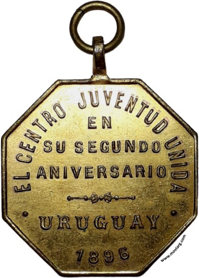 Anverso: Reverso: EL CENTRO JUVENTUD UNIDA / EN / SU SEGUNDO / ANIVERSARIO / URUGUAY / 1896 Referencia: | |