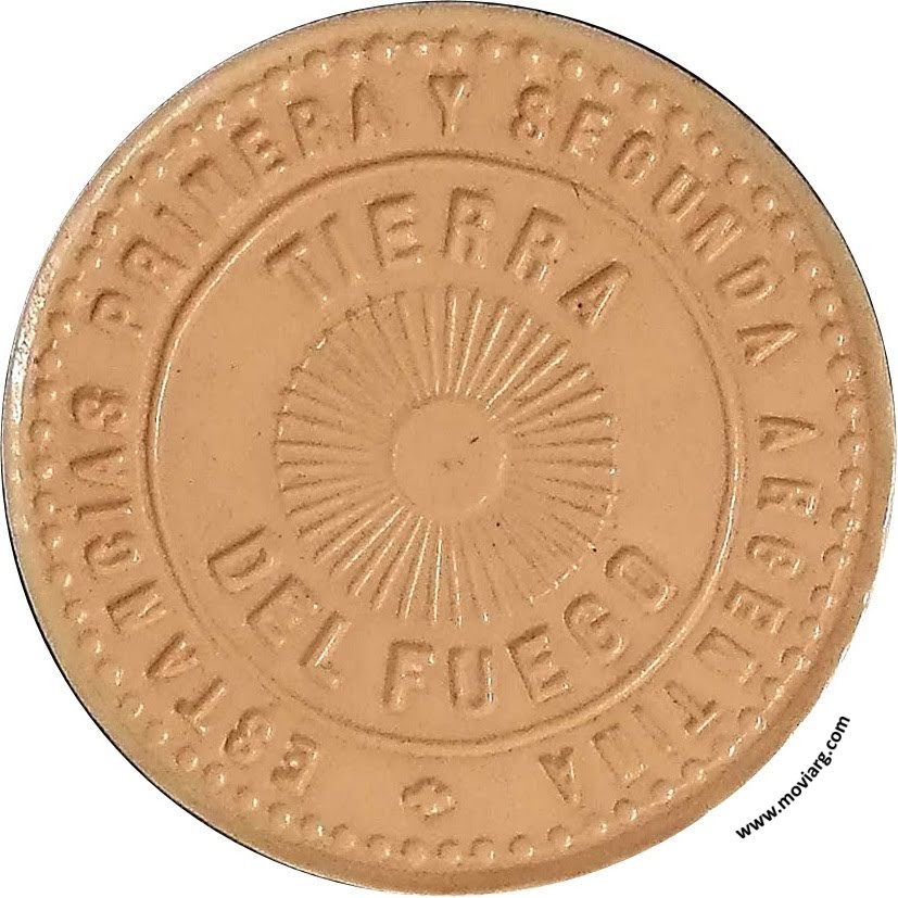 Anverso: ESTANCIAS PRIMERA Y SEGUNDA ARGENTINA / TIERRA / DEL FUEGO Reverso: PAGADERO EN MERCADERIAS EN PUNTA ARENAS / $ 1. Campo: 205096 Referencia: | |