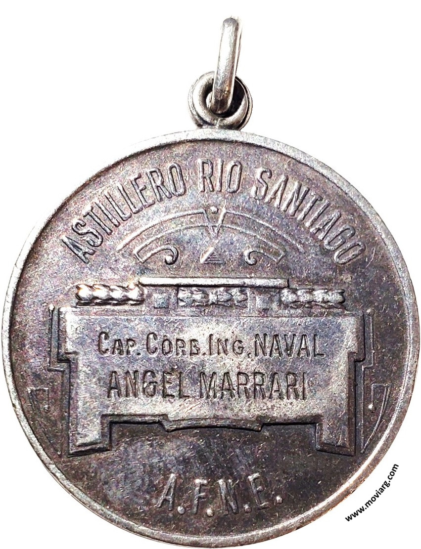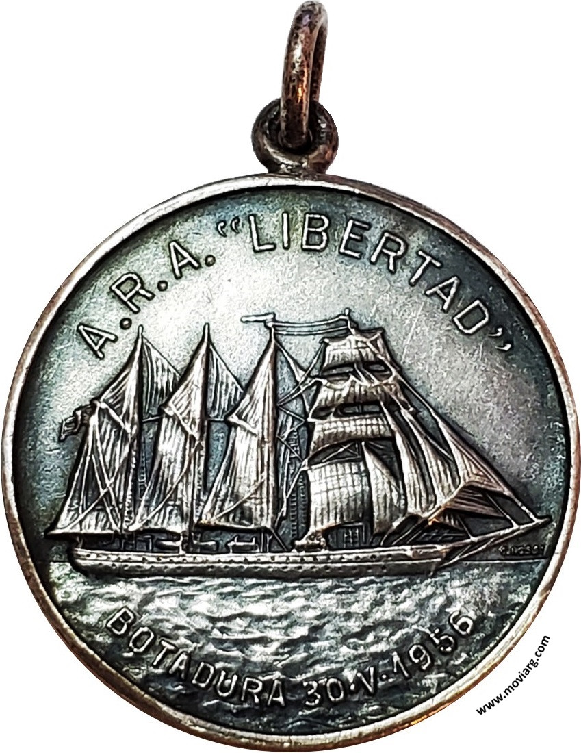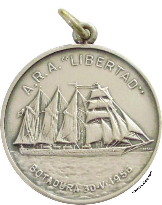 Anverso: A.R.A. " LIBERTAD " / BOTADURA 30-V-1956. Firma: C. ROSSI Reverso: ASTILLERO RIO SANTIAGO / [ CAP. CORB. ING. NAVAL ] / [ ANGEL MARRARI ] / A.F.N.E. Canto: Liso. PLATA Referencia: | |