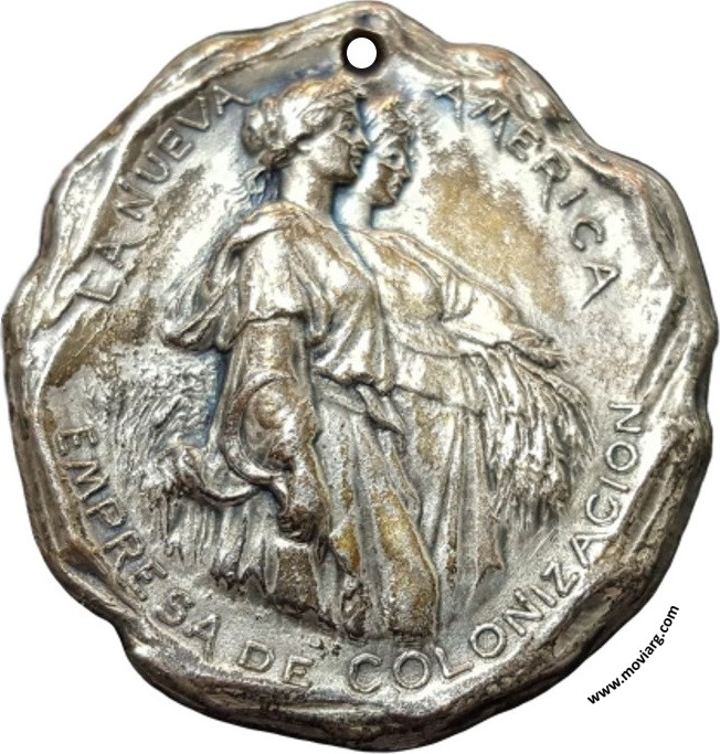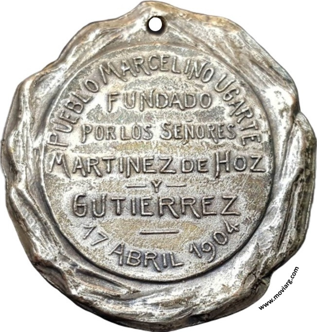 Anverso: LA NUEVA / AMERICA / EMPRESA DE COLONIZACION Reverso: PUEBLO MARCELINO UGARTE / FUNDADO / POR LOS SEÑORES / MARTINEZ DE HOZ / Y / GUTIERREZ / 17 ABRIL 1904 Referencia: | |