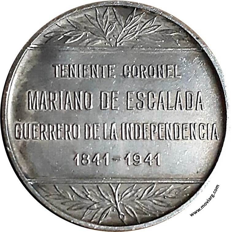 Anverso: Firma: CONSTANTE ROSSI Reverso: TENIENTE CORONEL / MARIANO DE ESCALADA / GUERRERO DE LA INDEPENDENCIA / 1841 - 1941 Referencia: | |