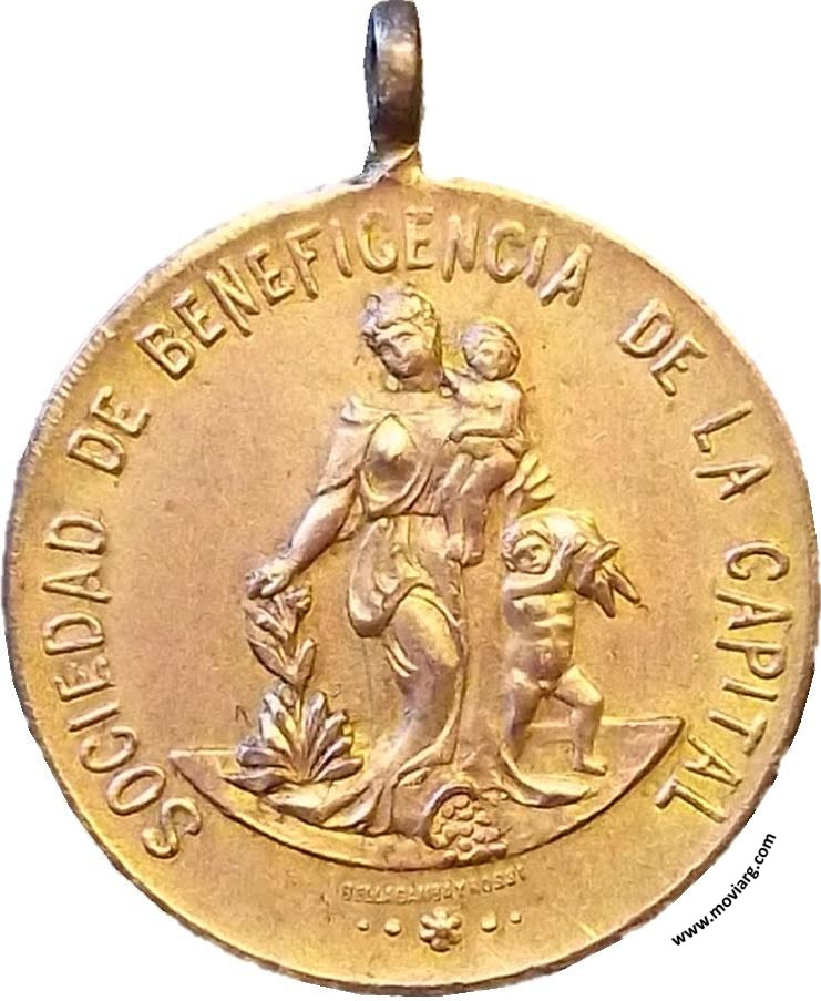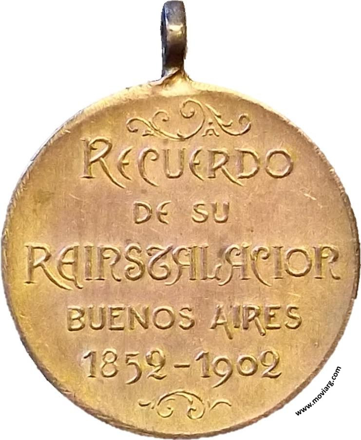 Anverso: SOCIEDAD DE BENEFICENCIA DE LA CAPITAL. Firma: BELLAGAMBA Y ROSSI Reverso: RECUERDO / DE SU / REINSTALACION / BUENOS AIRES / 1852 - 1902 Referencia: | |