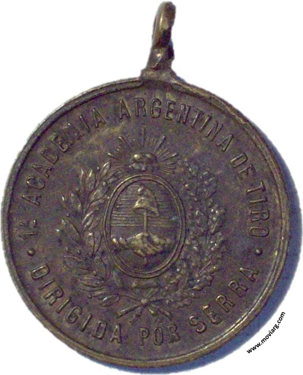 Anverso: 1A. ACADEMIA ARGENTINO DE TIRO / DIRIGIDA POR SERRA Reverso: HONOR AL MERITO Referencia: | |
