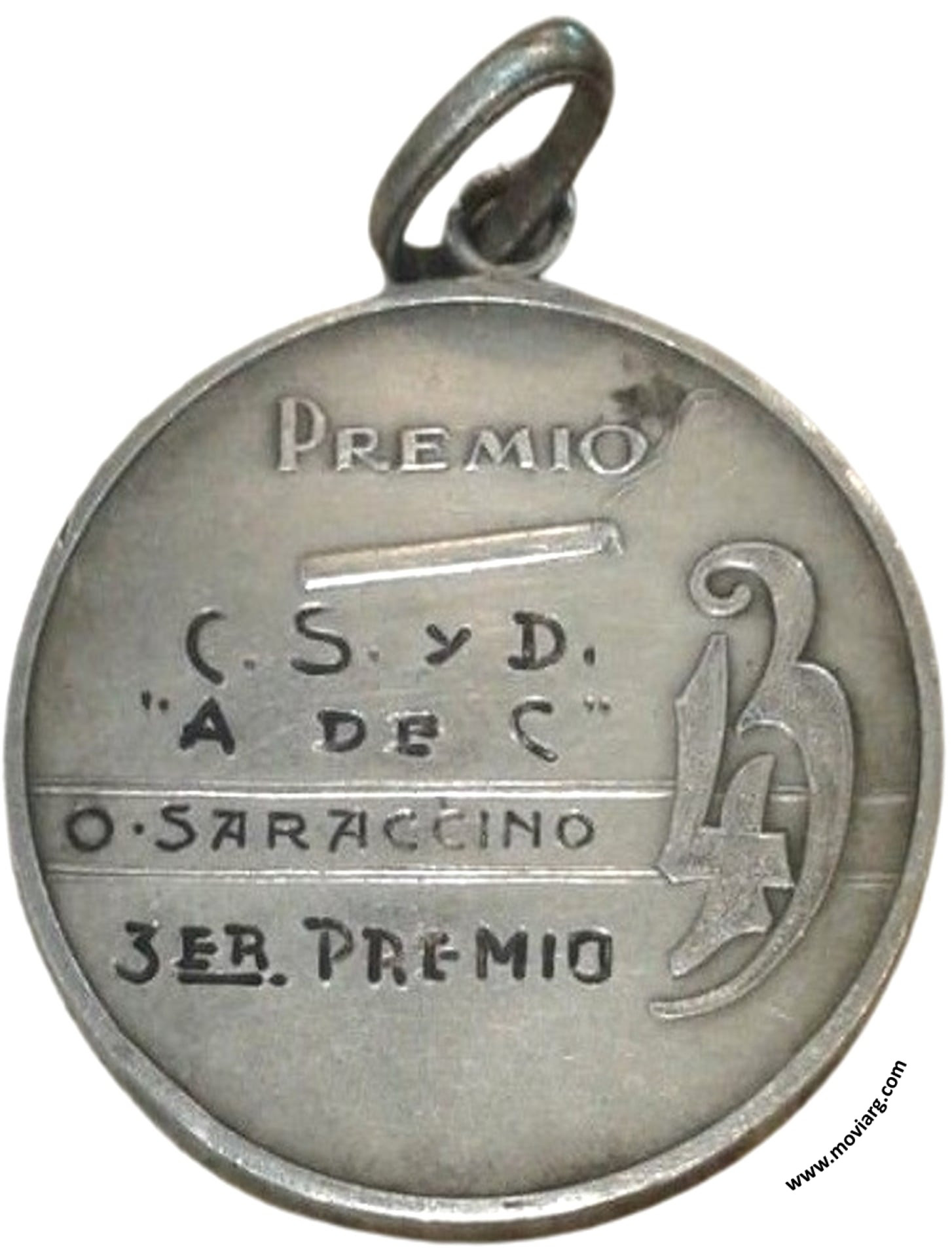 Anverso: TRUCO. Exergo: [ PLATA ] Reverso: PREMIO / 43 / [ C. S. Y D. ] / [ " A DE C " ] / [ O. SARACCINO ] / [ 3ER. PREMIO ] Referencia: | |