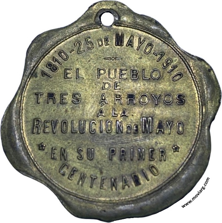 Colección Magnin Anverso: SEAN ETERNOS LOS LAURELES QUE SUPIMOS CONSEGUIRReverso: 1810 - 25 DE MAYO - 1910 / EL PUEBLO / DE / TRES ARROYOS / Á LA / REVOLUCION DE MAYO / EN SU PRIMER / CENTENARIO Referencia: | |