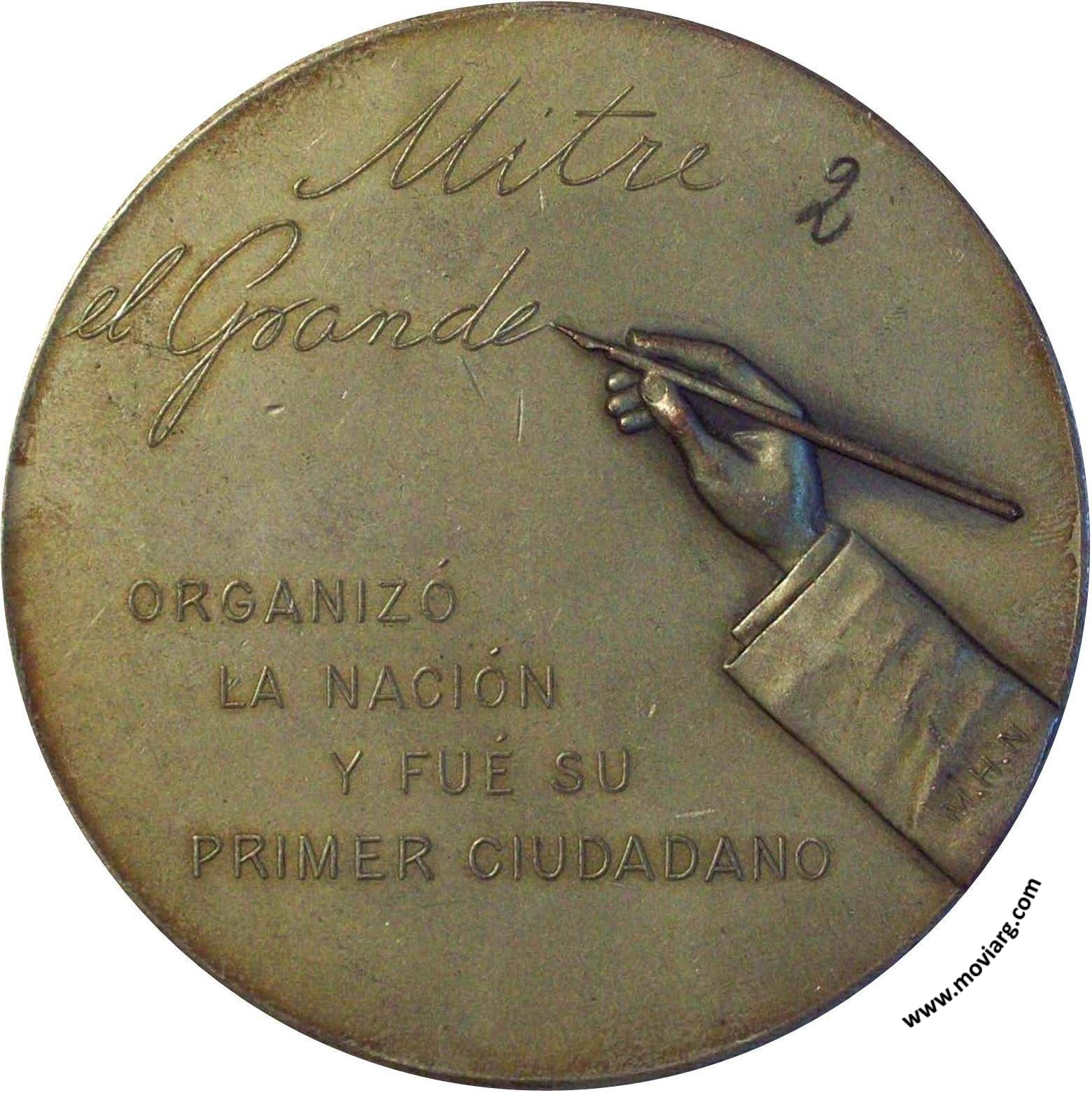 Anverso: 1821 / 26 DE JUNIO / 1906 / 19 DE ENERO. Firma: C. Y AF. ROSSI Reverso: MITRE / EL GRANDE / ORGANIZÓ / LA NACIÓN / Y FUÉ SU / PRIMER CIUDADANO. Exergo: M.H.N Referencia: BURZIO-1656 | |