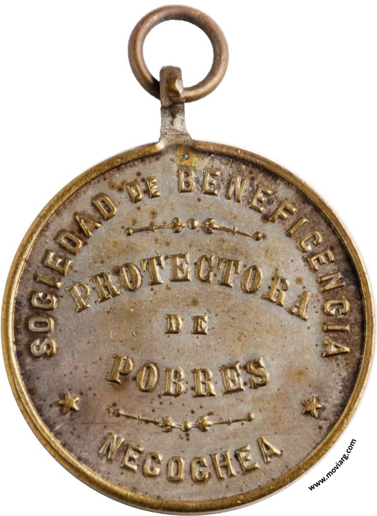 Anverso: FUNDACION DEL HOSPITAL DE CARIDAD / 12 OCTUBRE 1896 Reverso: SOCIEDAD DE BENEFICENCIA / PROTECTORA / DE / POBRES / NECOCHEA Referencia: | |