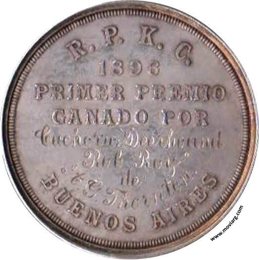 Kennel Club Argentino Anverso:Reverso: R.P.K.C. / 1896 / PRIMER PREMIO / GANADO POR / [ ??? ] / BUENOS AIRES Referencia: | |