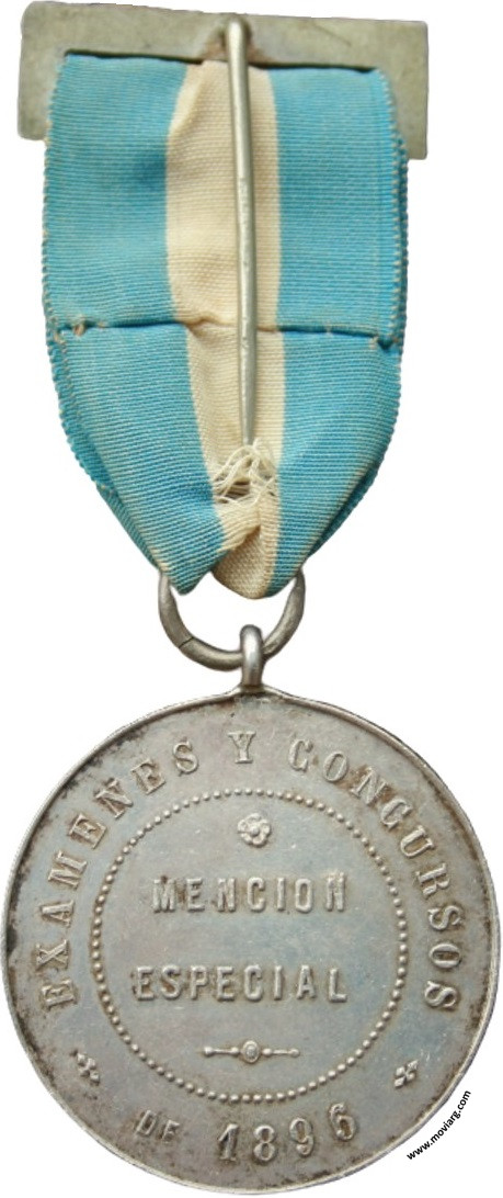 Colección Emilio y Nina Perucchetti Anverso: CONSERVATORIO ARGENTINO DE MUSICA / BUENOS AIRESReverso: EXAMENES Y CONCURSOS / DE 1896 / MENCION / ESPECIAL Referencia: | |