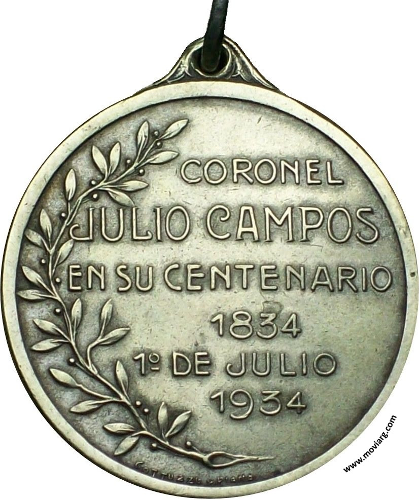 Anverso: Reverso: CORONEL / JULIO CAMPOS / EN SU CENTENARIO / 1834 / 1° DE JULIO / 1934. Firma: GOTTUZZO Y PIANA Referencia: | |